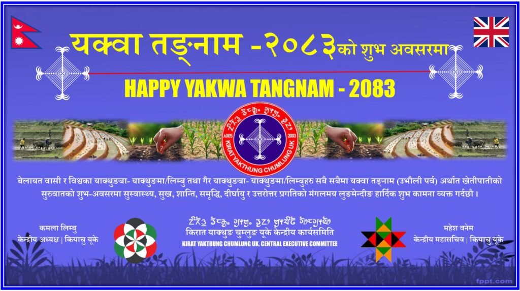 बेलायत लगायत विश्वभर बसोबास गर्नुहुने सम्पूर्ण याक्थुङबा–याक्थुङमा (लिम्बु) तथा गैर याक्थुङबा–याक्थुङमा दाजुभाइ तथा दिदीबहिनीहरूमा यक्वा तङ्नाम (उभौली पर्व) को यस पावन अवसरमा हार्दिक शुभकामना व्यक्त गर्दछौँ।