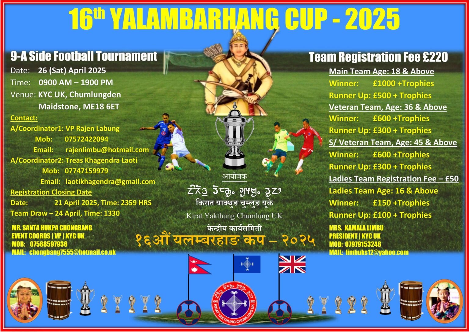ACTIVITIES किरात याक्थुङ चुम्लुङ युके को १६औ यलम्बरहाङ कप बेलायतमा भब्यताका साथ सम्पन्न । April 25, 2025 No Comments