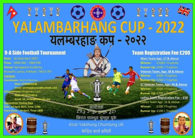किरात याक्थुङ चुम्लुङ यूकेको वार्षिक कार्यक्रम अन्तर्गत हुँन्दै आएको यलम्बरहाङ कप यस् बर्षको १४औं यलम्बरहाङ कप २०२३, मिती १५ अप्रिल २०२३ का दिन Feltham Community College, Browell’s Lane, London