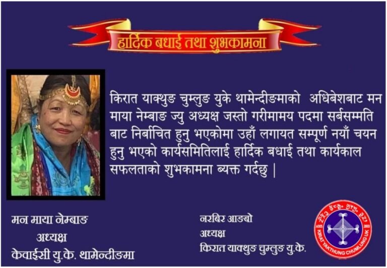 आदिवासी जनजाति याक्थुङ/लिम्बुहरुको प्रतिनिधि मुलक सँस्था कियाचु यूकेले चासोक तङ्नाम – २०२३ (येले तङ्बे ५०८३) सब्य र भब्यताका सम्पन्न गरेको छ । KYC UK, Chumlungden/Him, Maidstone, Kent, England, UK