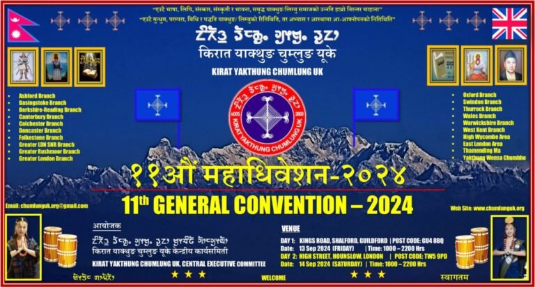 किरात याक्थुङ चुम्लुङ युकेको वार्षिक साधारण सभा Chumlungden, Yalding, Maidstone मा सम्पन्न । “एउटै भाषा, लिपि, संस्कार, संस्कृती र भावना, समृद्ध लिम्बु/याक्थुङ समाजको उन्नति हाम्रो निरन्तर चाहना। एउटै मुन्धुम,
