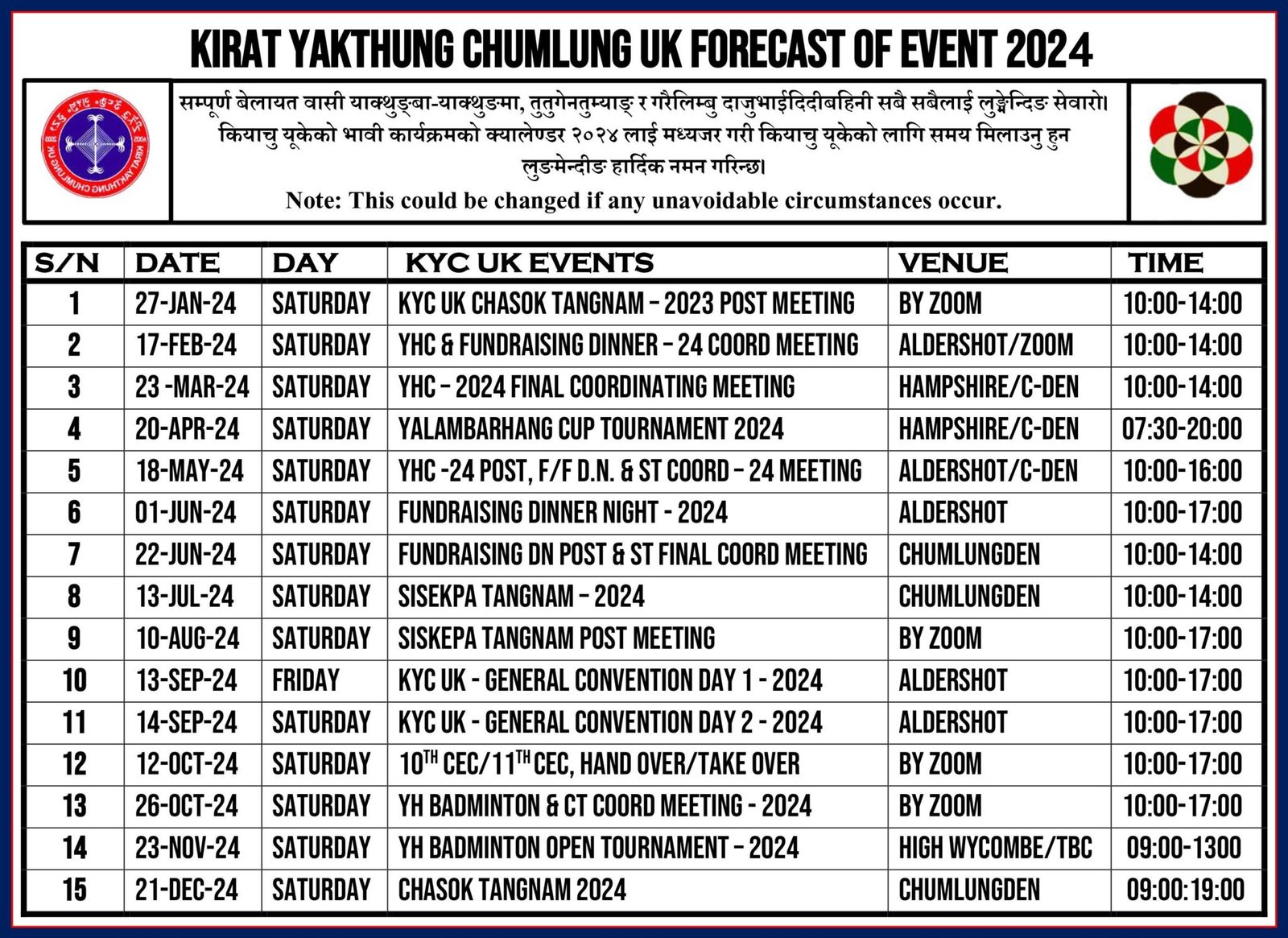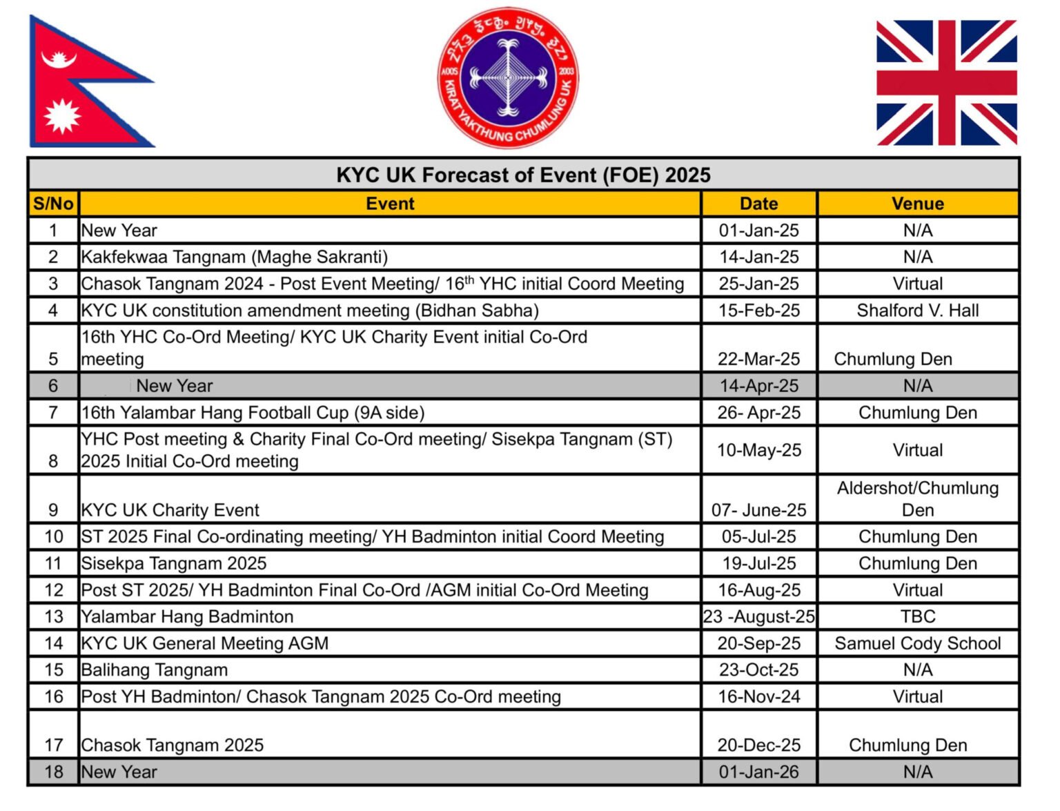 KYC UK – FORECAST OF EVENTS