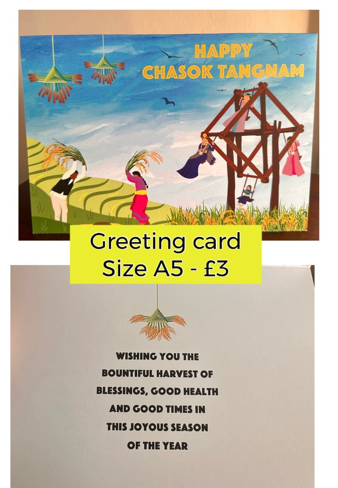 These greeting cards celebrate Chasok Tangnam, one of the most significant cultural festivals of the Yakthung community. The artwork portrays traditional harvest celebrations, including the Linge Ping (traditional swing) and cultural dances. The inner message conveys wishes of health, prosperity, unity, and gratitude, reflecting the values promoted by Kirat Yakthung Chumlung UK.